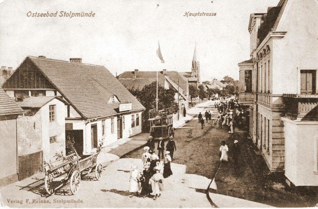 Pocztówka z odręcznie datą 27.06.1897 – na drugim planie kościół pw. Najświętszego Zbawiciela w Ustce