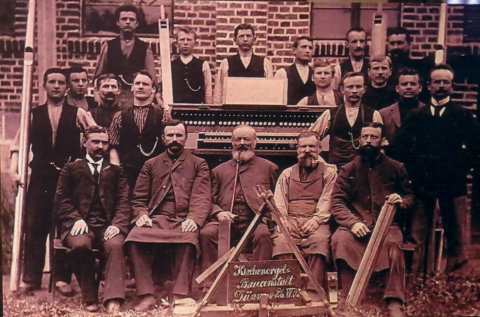 Organmistrz Christian Friedrich Voelkner pochodził z rodziny kościelnych organistów i nauczycieli, którzy od roku 1734 nieprzerwanie przez 112 lat pracowali w Duninowie. Christian Voelkner nauczył się budowy organów w Berlinie u organmistrza Carla Augusta Buchholza. Pierwsze organy tego zakładu zostały prawdopodobnie zamontowane w kościele w pobliskim Charnowie. Na początku produkcja instrumentów odbywała się praktycznie w całości ręcznie, za pomocą prostych narzędzi. Wraz z rozwojem firmy oraz coraz większą ilością zamówień, także technologia produkcji została rozwinięta. Wyprodukowane organy trafiły do Niemiec, Rosji, Polski, a nawet do niemieckiej kolonii w Afryce Wschodniej. W dzienniku urzędowym rejencji koszalińskiej z 27 listopada 1873 roku zalecano usługi firmy organmistrza z Duninowa. W 1876 roku zbudował nowy budynek fabryczny, a rok później zainstalował maszyny.